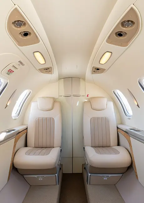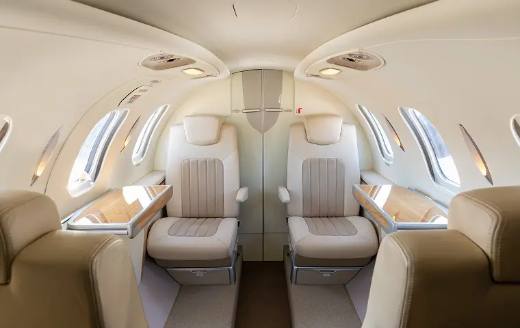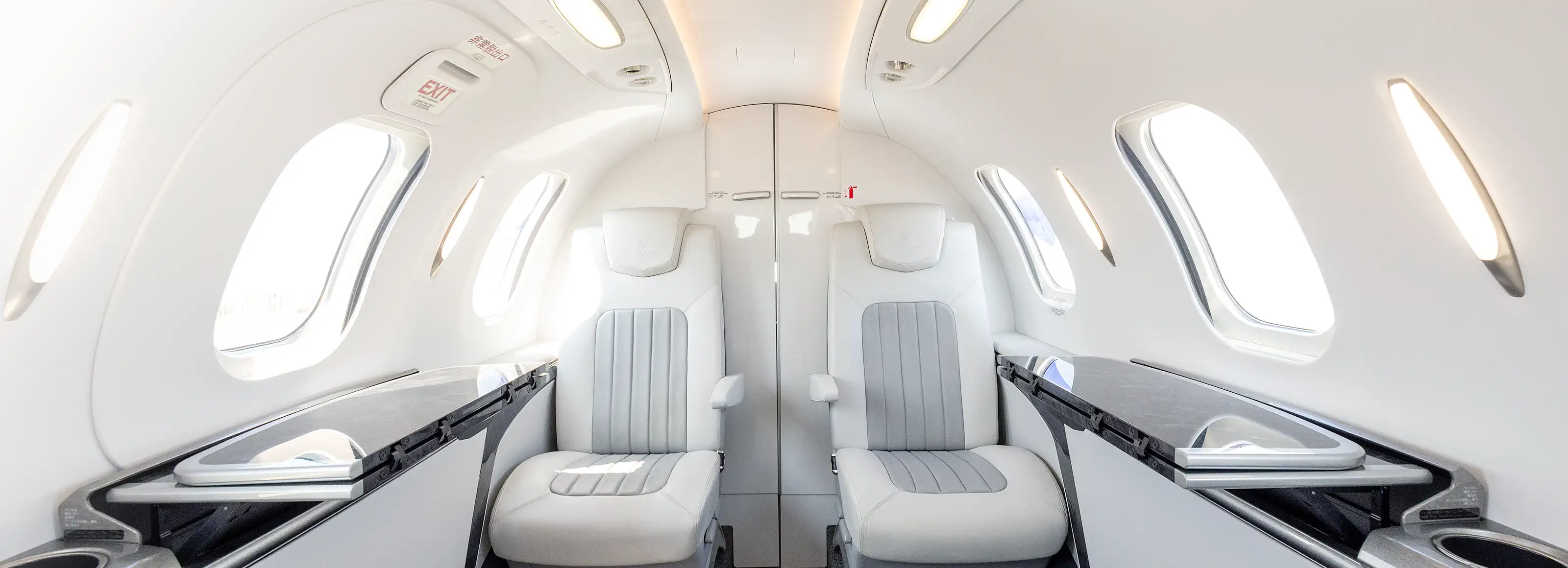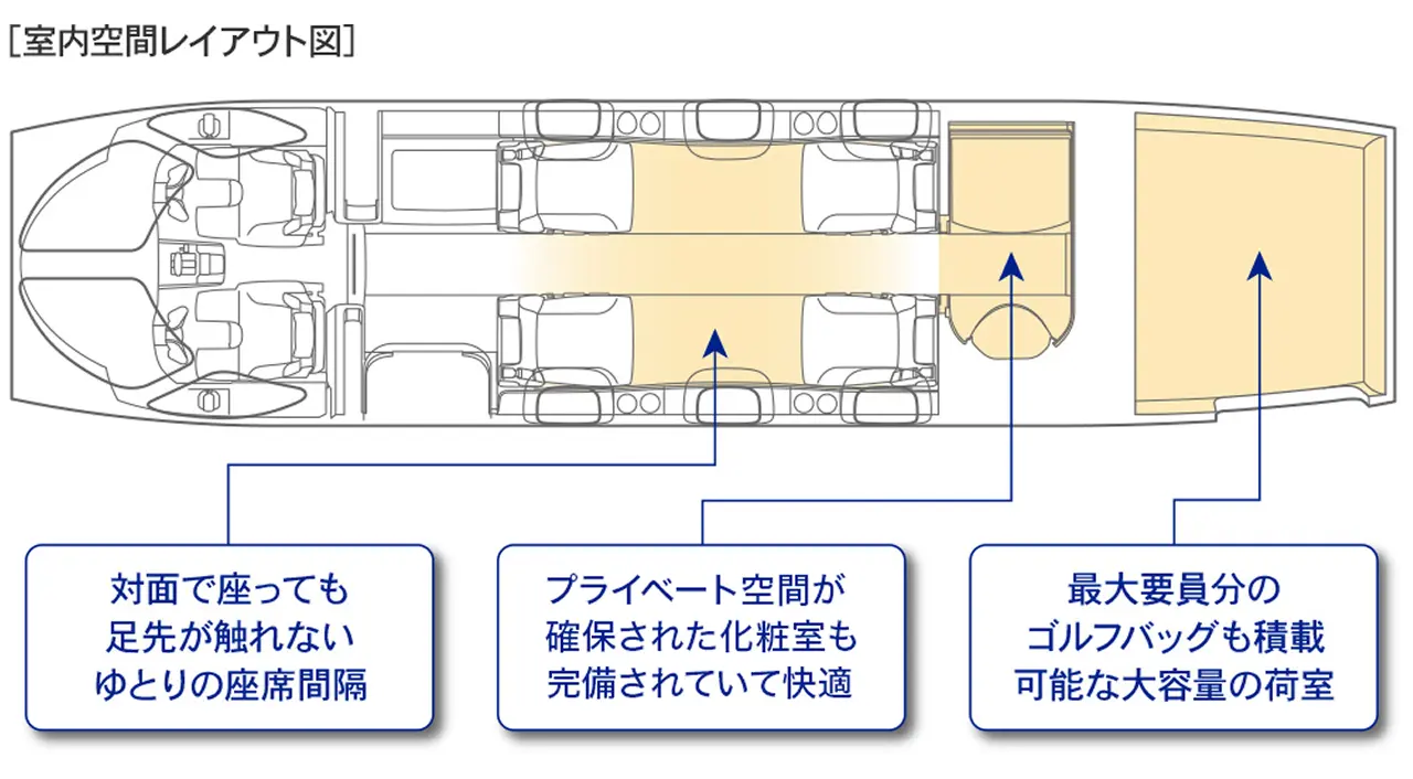 HondaJet の機内は対面で座っても足先が触れないゆとりのある座席間隔となっており、